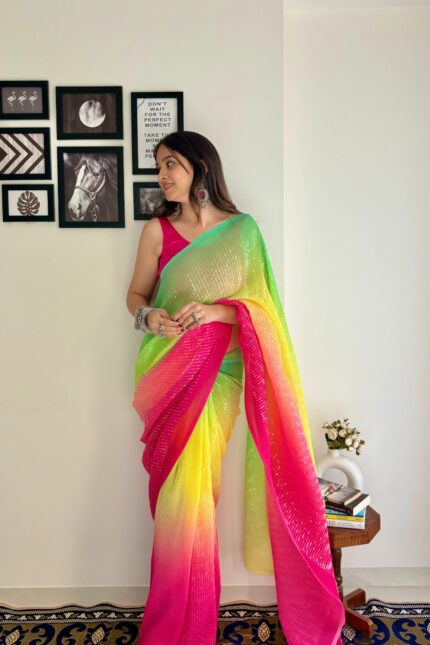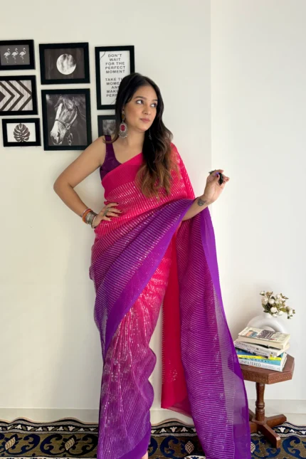 Sequence Saree is the most desired possession for every fashionista. The brilliance of 9-yard sequin sarees is no more confined to traditional works only, it has been levelled up with modern intricacies. Moreover, when it comes to glamorous parties, you can create an alluring fashion statement with sequin sarees. Want to shop sequin sarees online? SareSagaa’s enviable collection is all here to dazzle your special days!