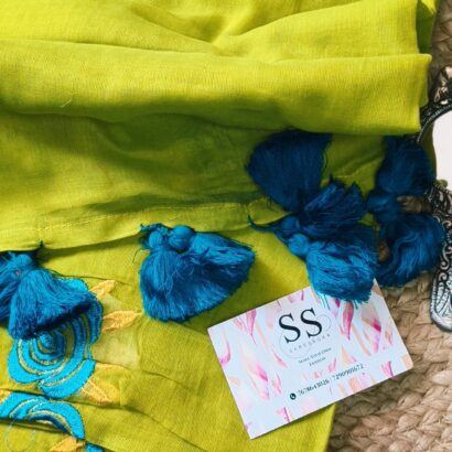 Crafted from the finest Cotton Mulmul, this saree is the epitome of “wearable clouds.” Known for its incredible softness and lightweight breathability, it drapes effortlessly, making it an ideal choice for long summer days, garden parties, or elegant brunches.