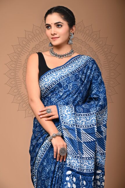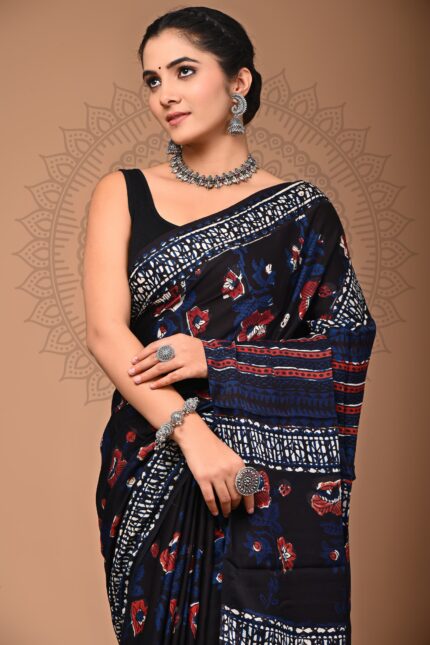 Modal Silk Bagru Hand Block Printed Saree with blouse