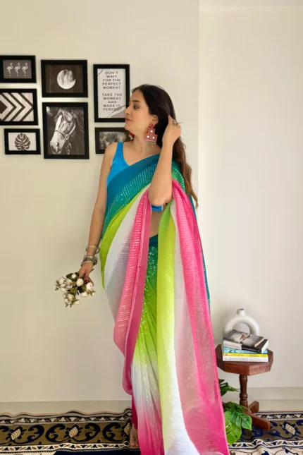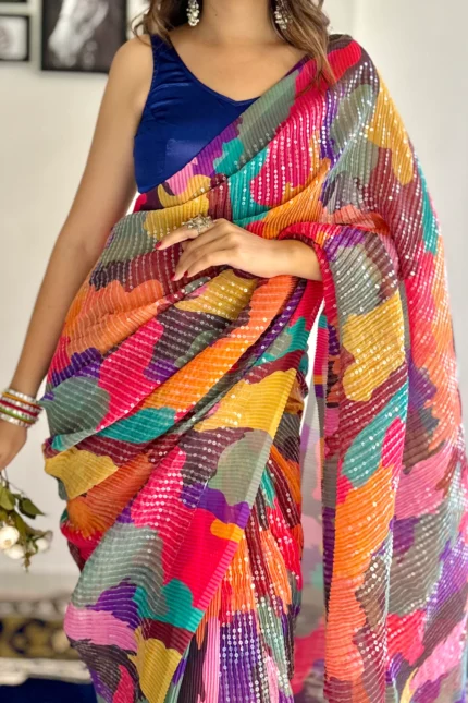 Gorgeous Full Crushed Soft Georgette Saree with All Over 5 mm sequence work in full saree With 3D Color Effect