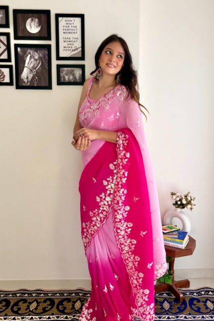 “Saree ka material lightweight hai, lekin woh royal feel deta hai. Har ek layer ki detailing dekhne laayak hai.”