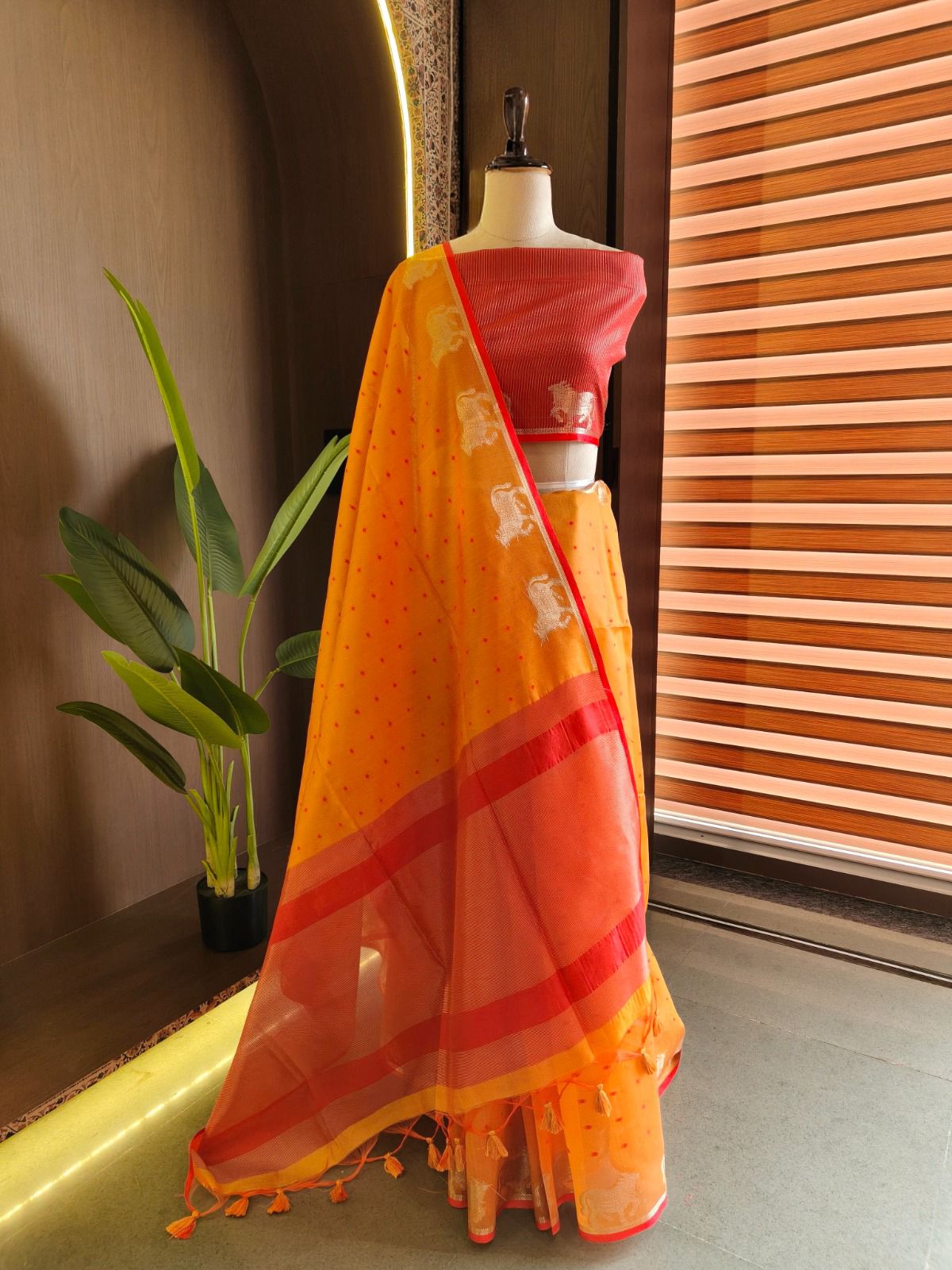 - 🧵 Fabric: Premium Raw Silk Tussar (Rich Texture & Breathable)