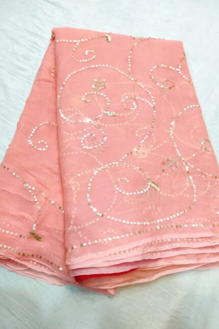 It features shimmering mukaish work detailing all over. The saree comes with a running unstitched blouse piece