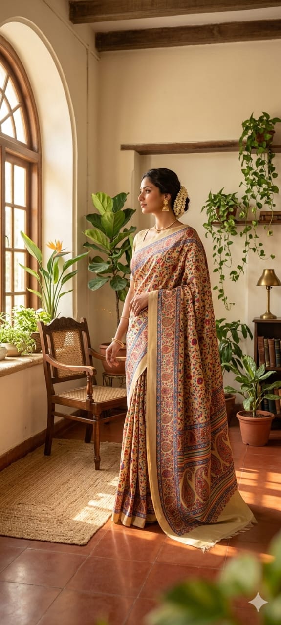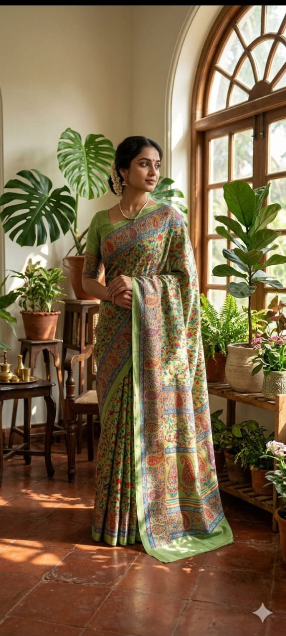 - This Soft Mul Cotton Kashmiri Saree with Traditional All-Over Kani Print and Contrast Border is crafted for women who appreciate timeless elegance blended with everyday comfort.