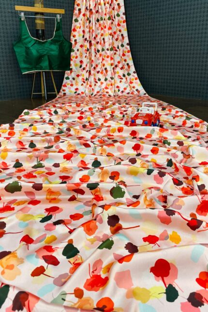 Traditional Ajrakh Digital Print Soft Satin Sarees with Blouse