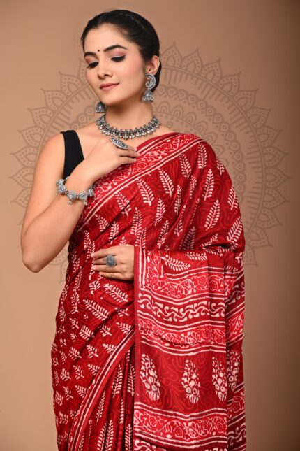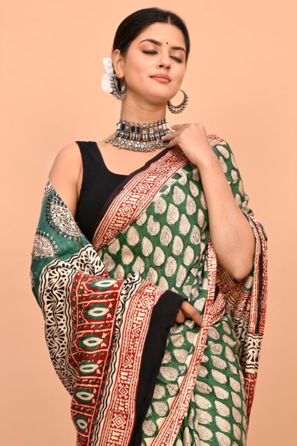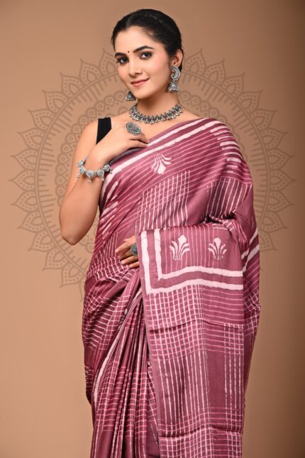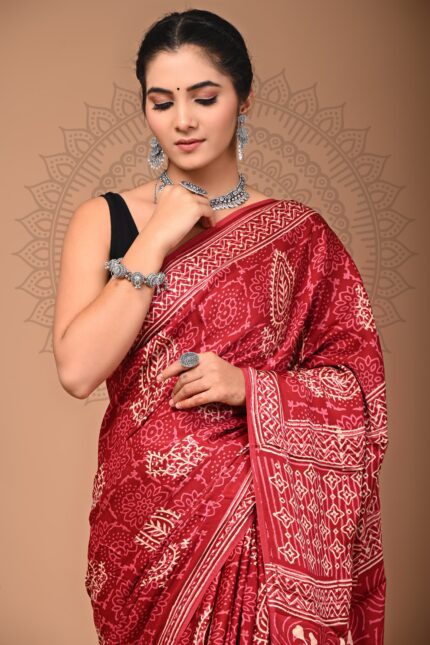Modal Silk Bagru Hand Block Printed Saree with blouse