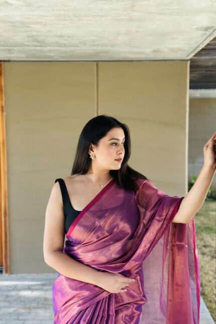 Enhance your ethnic wardrobe with the striking Double Shade Tissue Saree, exclusively available at SareSagaa.